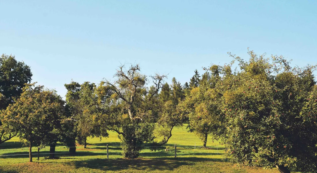 Die letzten Jahre gab es praktisch kaum Neupflanzungen, der Bestand wurde nicht als etwas »Besonderes« gesehen. Eine Wiese mit Obstbäumen halt, die letztendlich nur Arbeit macht. Das ändert sich erfreulicherweise allerdings immer mehr. Durch die Sensibilisierung für die regionalen Besonderheiten und die Verantwortung für die Heimat entdecken viele wieder das Wohlfühlen in der Natur, speziell hier im naturnahen Anbau, nicht zuletzt zur Selbstversorgung. Da aber aufgrund der mangelnden Pflege – oft durch Unwissenheit oder absichtliche Verwilderung – der bestehenden Streuobstwiesen ein großer Teil der jungen Bäume vorzeitig vergreist und sich nicht zu großkronigen, ökologisch wertvollen Bäumen entwickelt, besteht hier Handlungsbedarf.